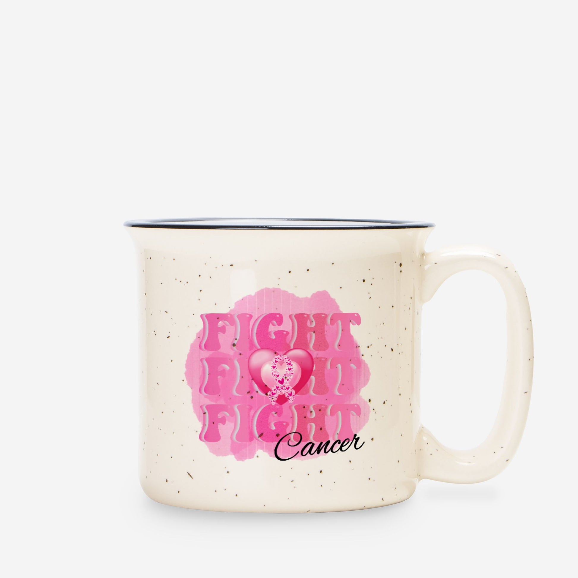 Fight Fight Fight Cancer Ceramic Camp Mug Speckled Cream 13oz